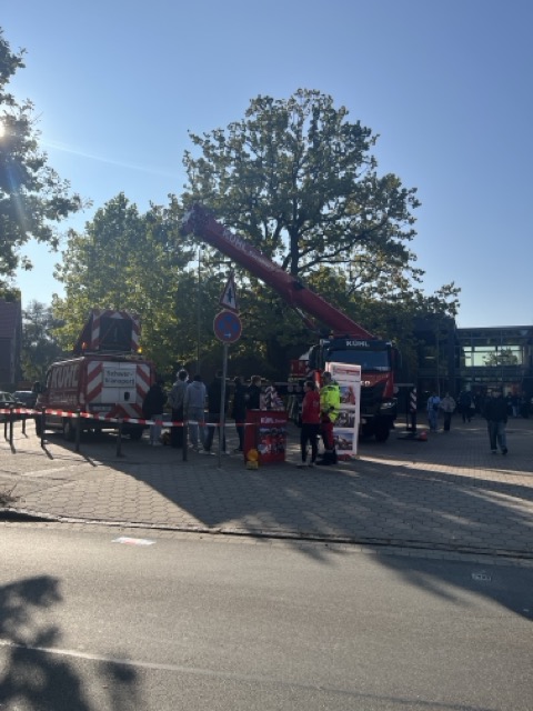 Bei gutem Wetter fanden auch die Außenstände großen Anklang: Der Kühl GmbH Kranverleih verzeichnete reges Interesse am Kranfahren, und der Bundeswehrtruck zog zahlreiche Besucherinnen und Besucher an.