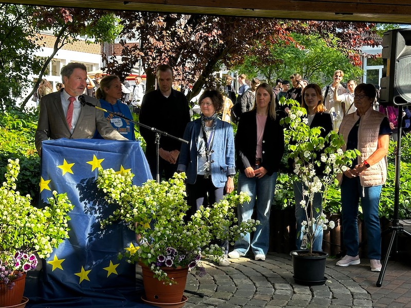 Am 13.05.2024 eröffnete unser Schulleiter Erik Sachse zusammen mit der stellvertretenden Kreispräsidentin sowie der Europagruppe die Europawoche 2024. Begleitet wurde die Eröffnungsfeier von den Bläserklassen der Bismarckschule Elmshorn. Diese durften anschließend noch am Sportunterricht unserer Schule teilnehmen.
