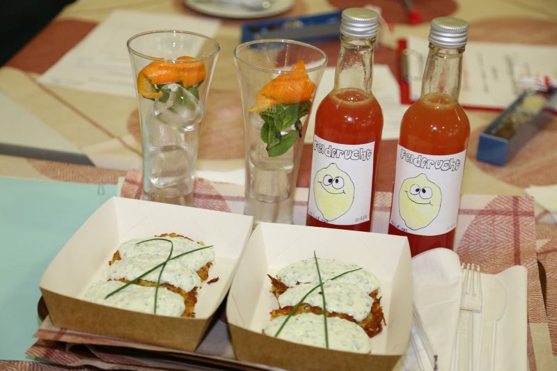 Alkoholfreie Cocktails rund um den Apfel mit JiMsBar können Sie am 28.9. von 10 bis 16 Uhr herstellen. Die Kosten betragen 45€. Oder Sie entscheiden sich für die Herstellung von Apfelgebäcken aus der Konditorei (Feinbackwaren). Hier ist ein Beitrag von 8€ zu entrichten.