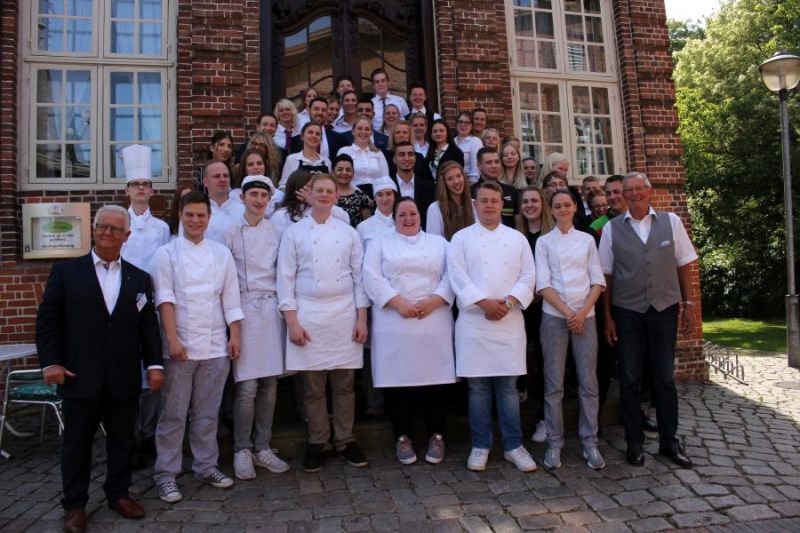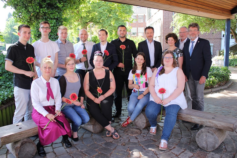 Die Kreispräsidenten der Kreise Pinneberg und Itzehoe , Helmuth Ahrens und Peter Labendowicz, ehrten bei sommerlichen Temperaturen und leckerer Erdbeerschnitte im Schulhof die erfolgreichsten Auszubildenden der nahrungsgewerblichen Abteilung der Beruflichen Schule Elmshorn.